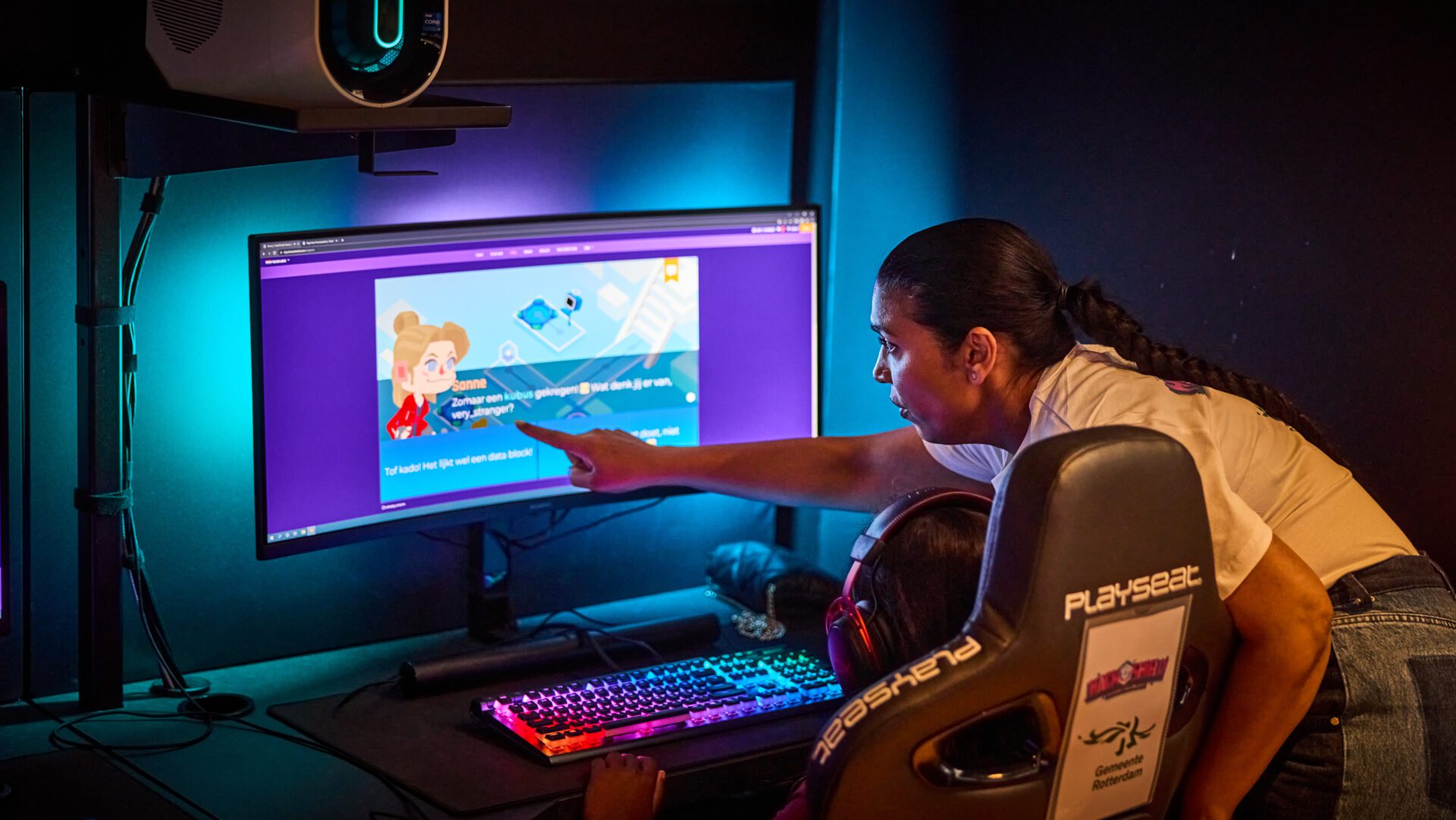 Een van de bezoekers van het spel is Genoa (11): ‘Het is hier heel gezellig! Het is de eerste keer dat ik in de Go!Gaming hal van Pathé Schouwburgplein ben. Ik leer vandaag alles over de gevaren van internet. Zelf ben ik gelukkig geen slachtoffer van cybercriminelen. Een vriendin van mij wel, ze klikte laatst per ongeluk op een verkeerde link op haar TikTok-account. Toen was haar account verwijderd. Mijn tip aan leeftijdsgenoten: klik nooit op een onbekende link.’