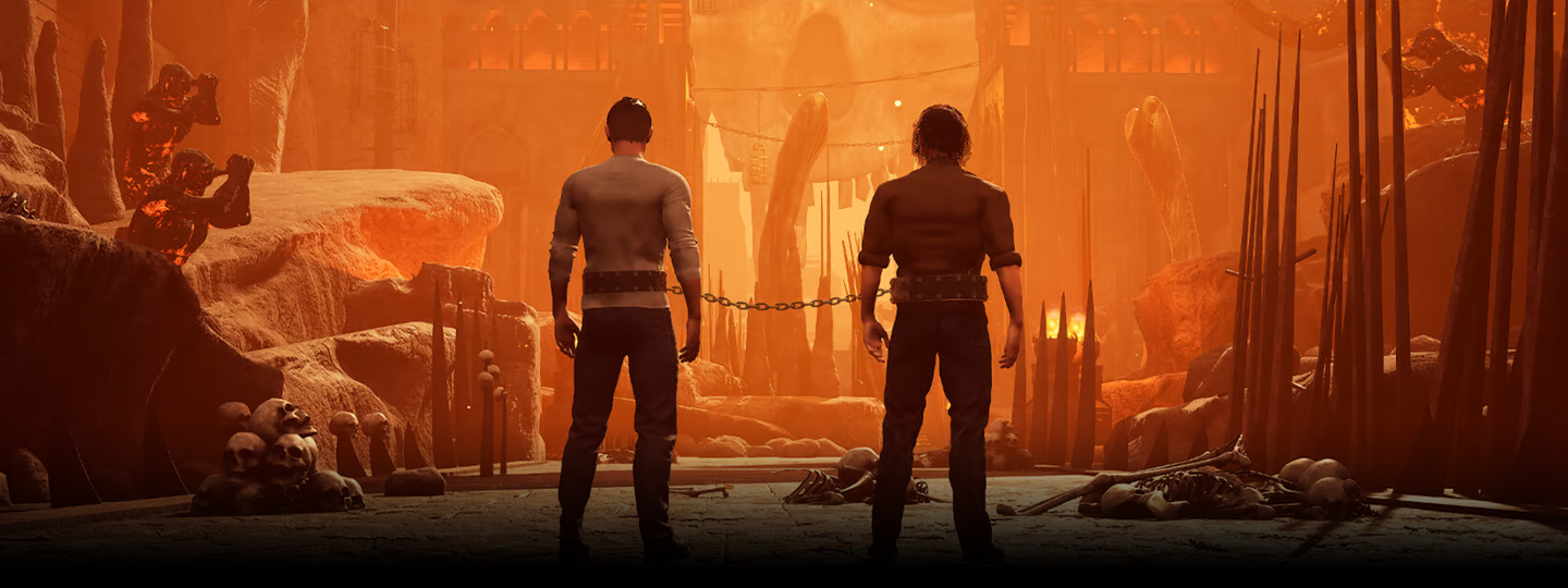 Duik in het epische avontuur van Chained Together! Begin je reis in de diepten van de hel, vastgeketend aan je metgezellen. Je missie is om uit de hel te ontsnappen door zo hoog mogelijk te klimmen. Elke sprong vereist perfecte coördinatie om de platforms te beklimmen en te ontsnappen aan de verzengende hitte, een kleine misstap en je valt weer naar beneden. Reis door verschillende werelden, elk met unieke uitdagingen!